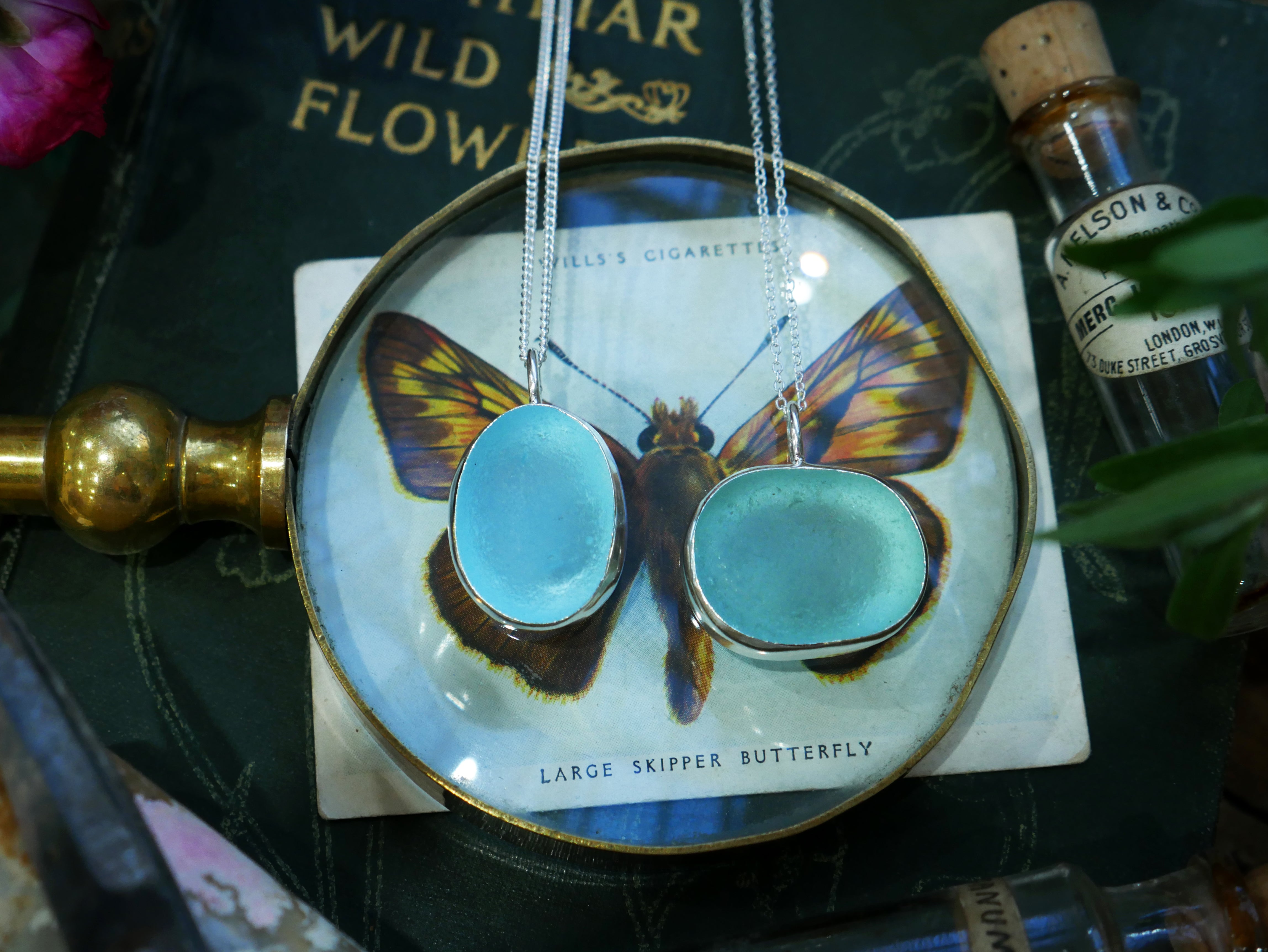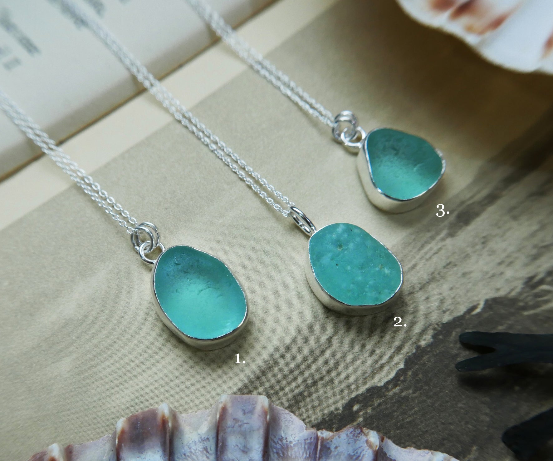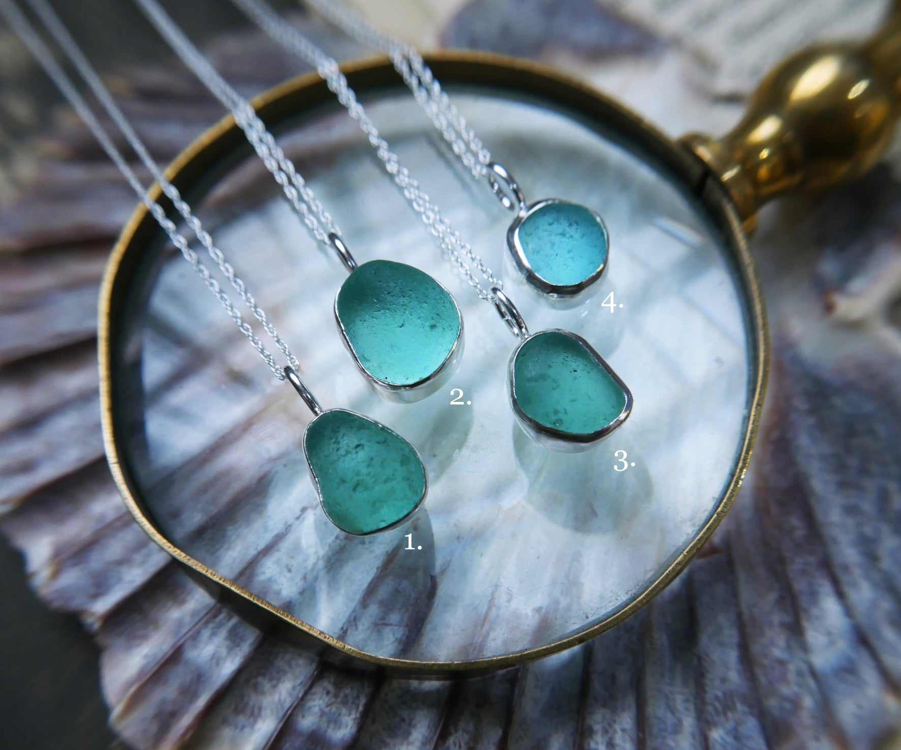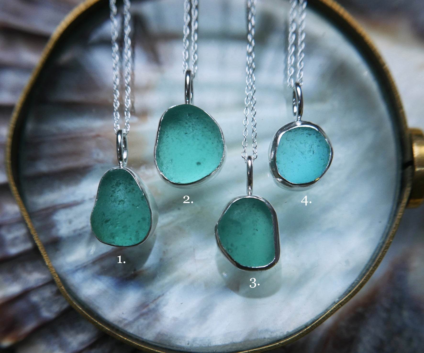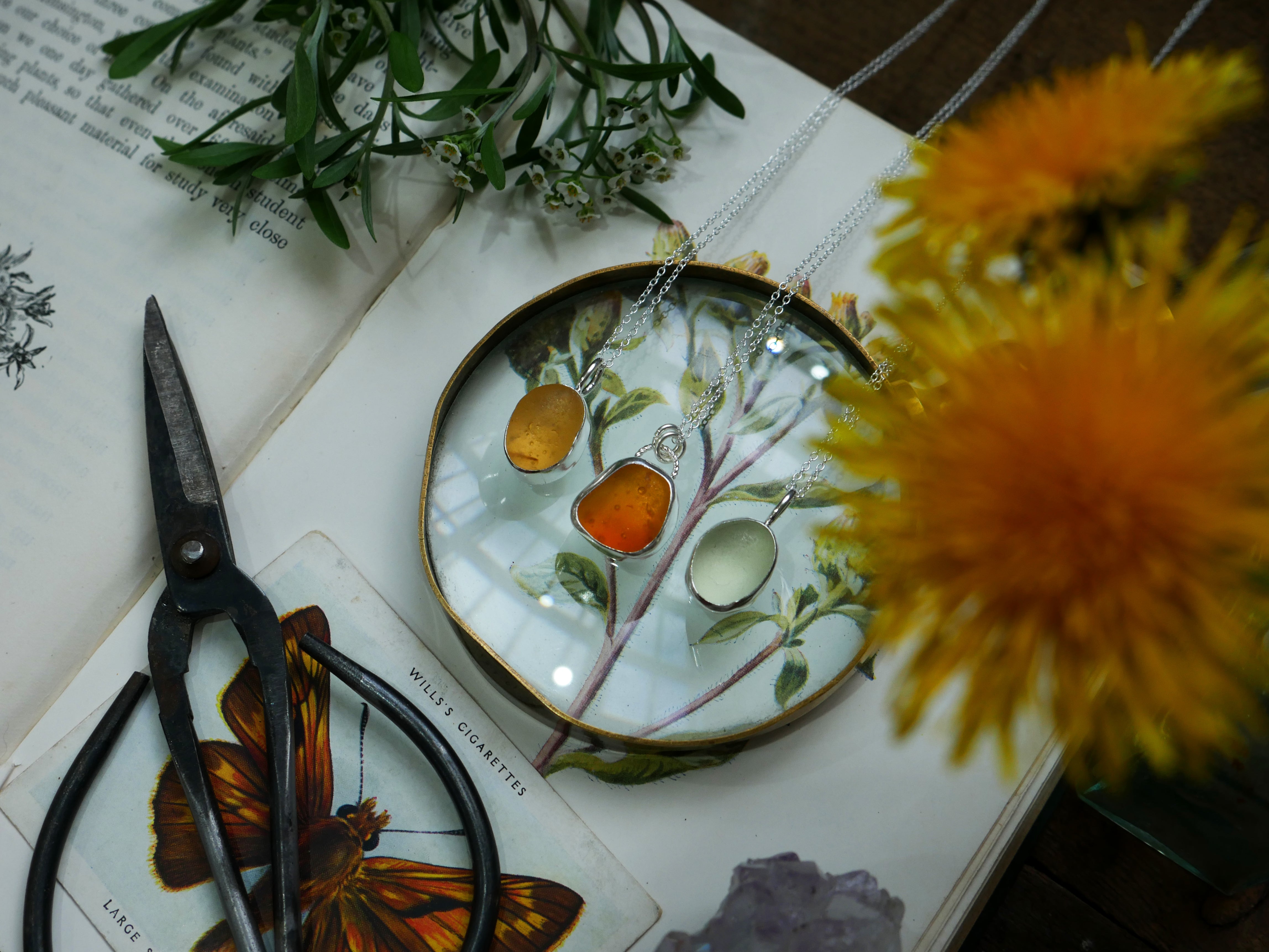 Each of our classic sea glass necklaces are completely unique and come in a wide variety of shapes and colours, all of which have been hand collected and found on shores all over Scotland by us. 100% hand crafted in beautiful, bright sterling silver in our Glasgow shop.