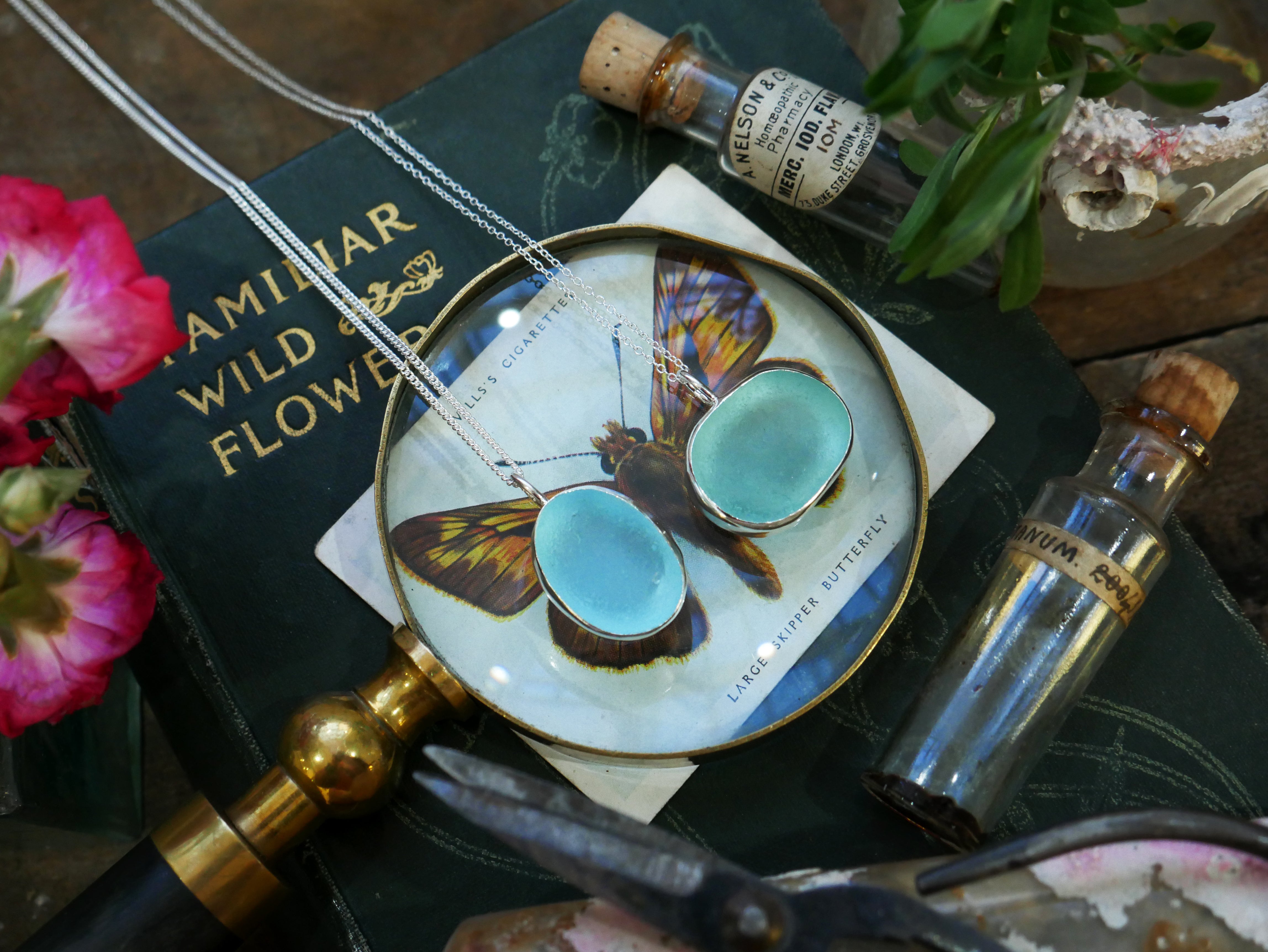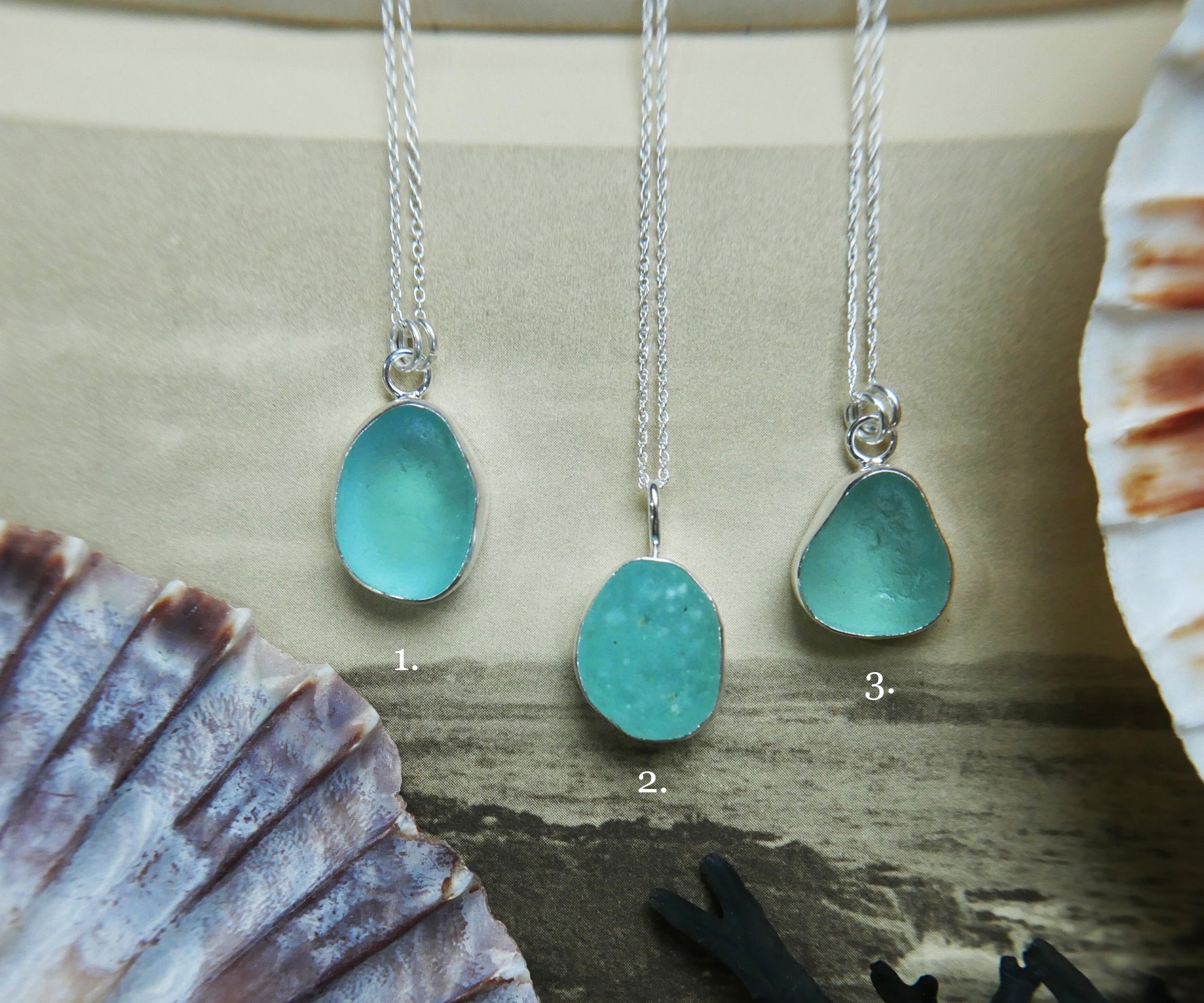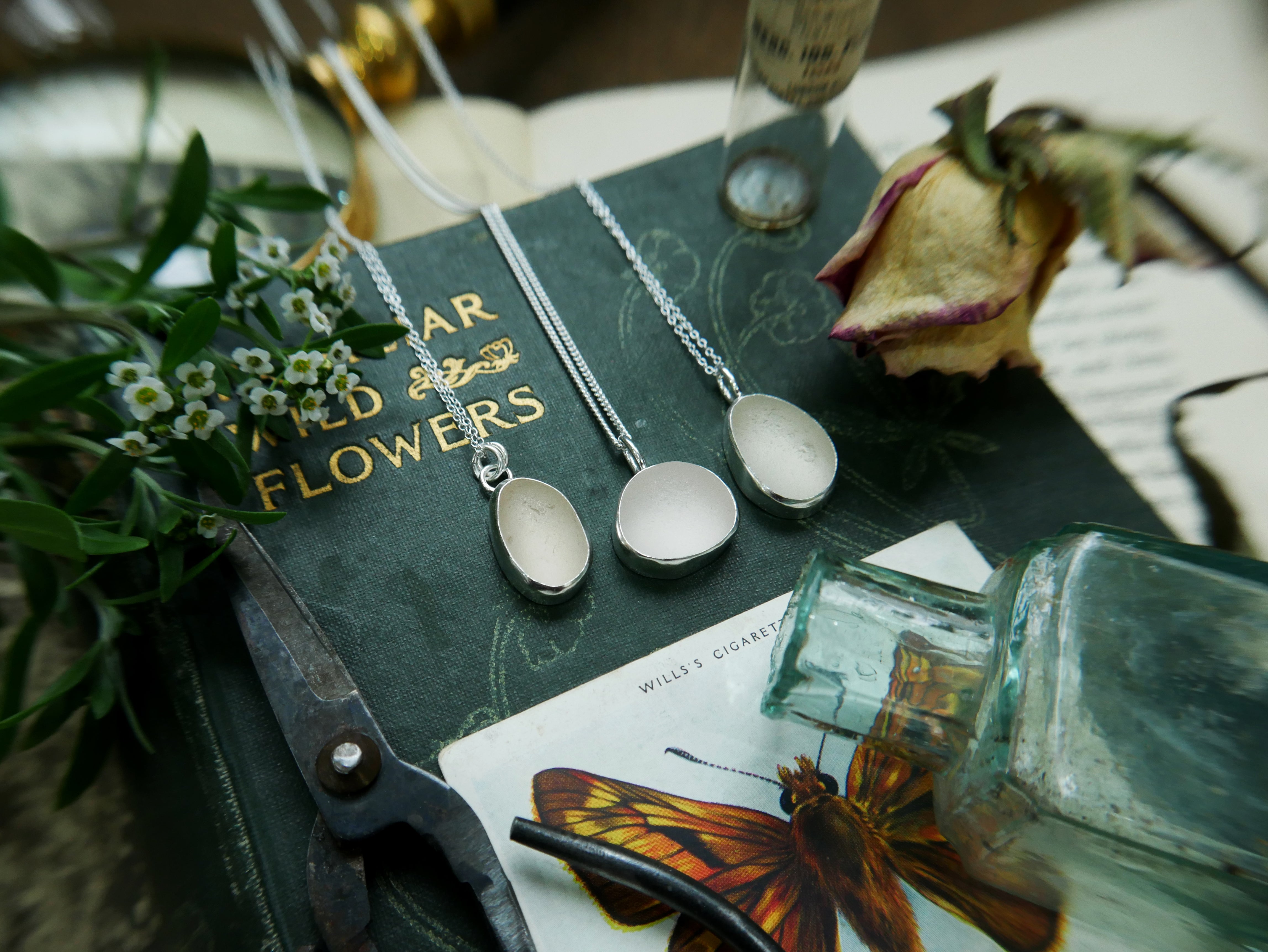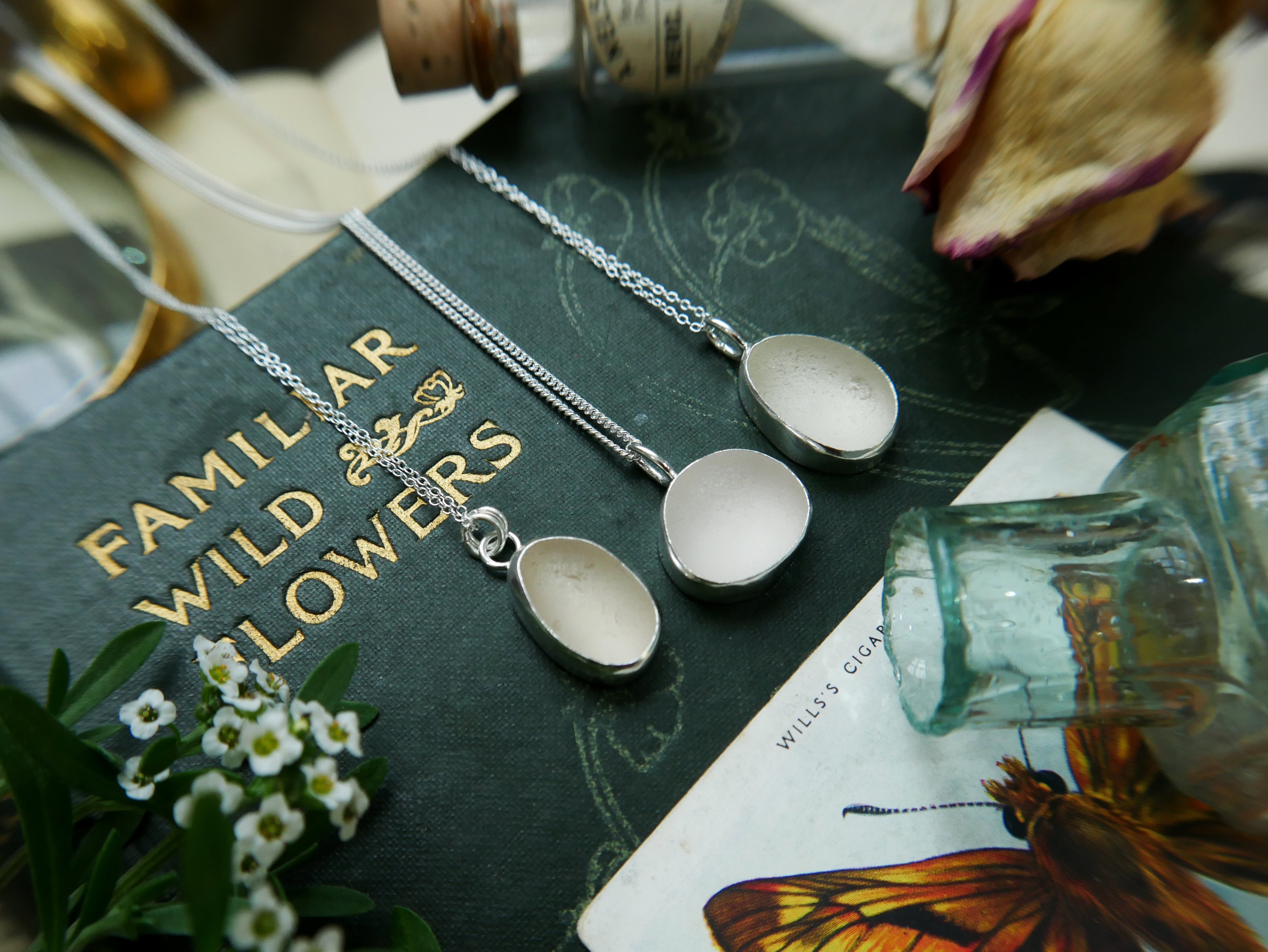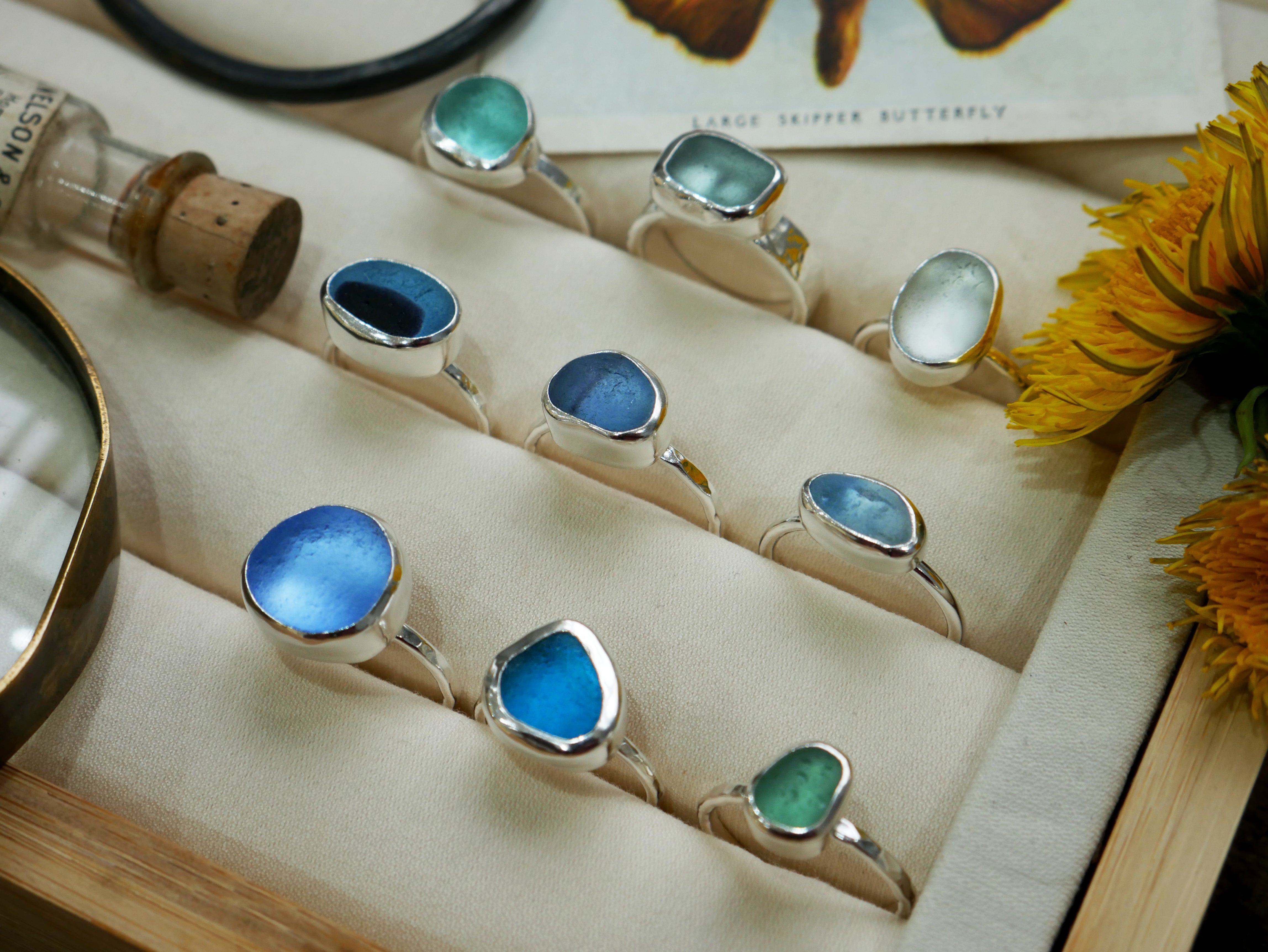 Each of our classic sea glass necklaces are completely unique and come in a wide variety of shapes and colours, all of which have been hand collected and found on shores all over Scotland by us. 100% hand crafted in beautiful, bright sterling silver in our Glasgow shop.