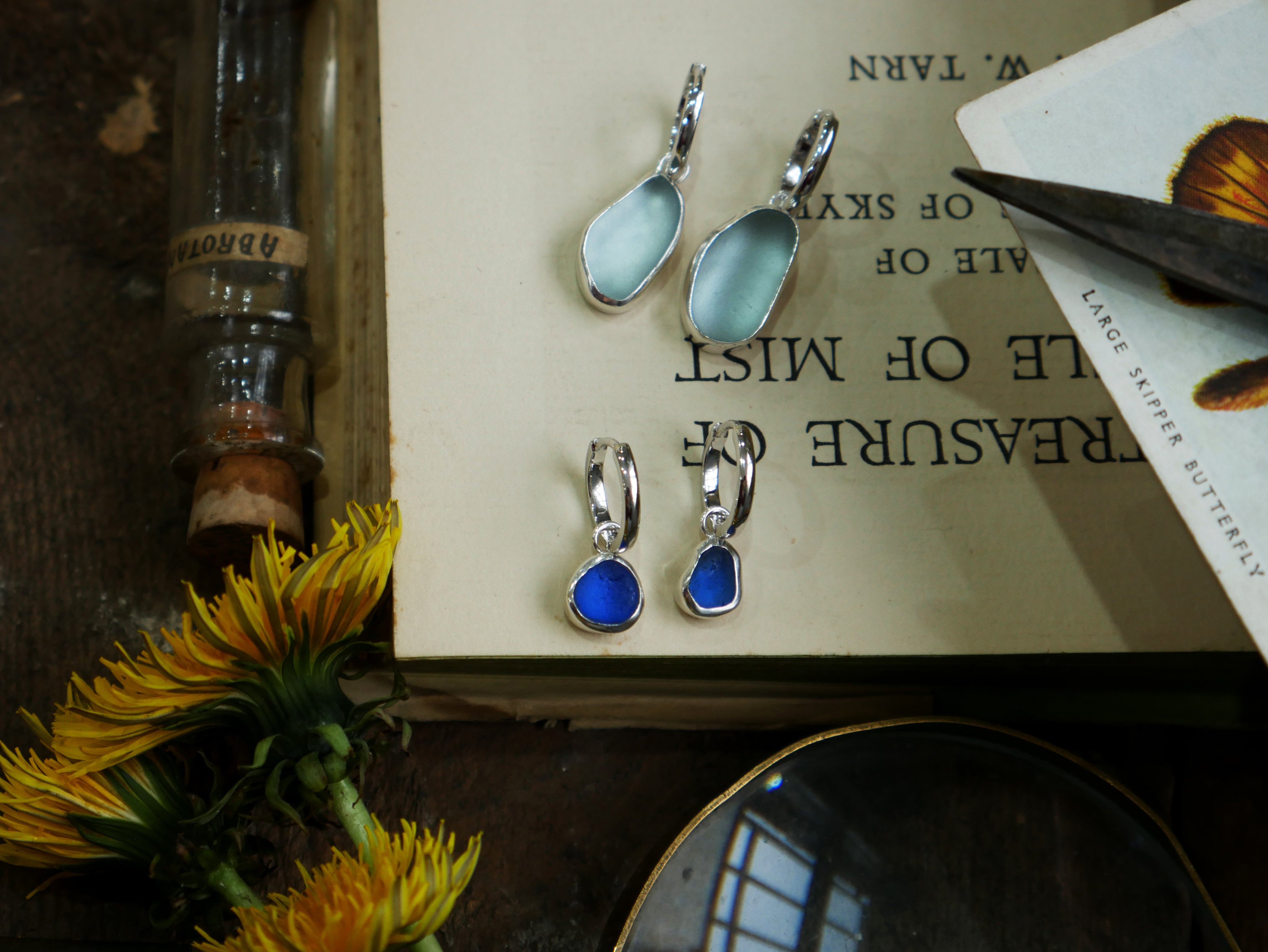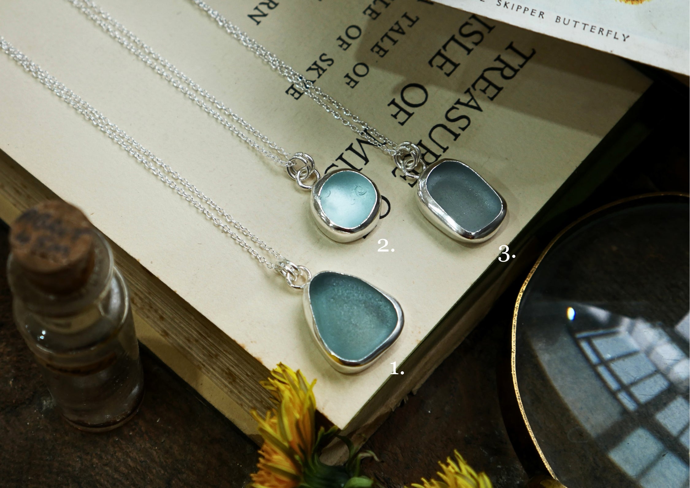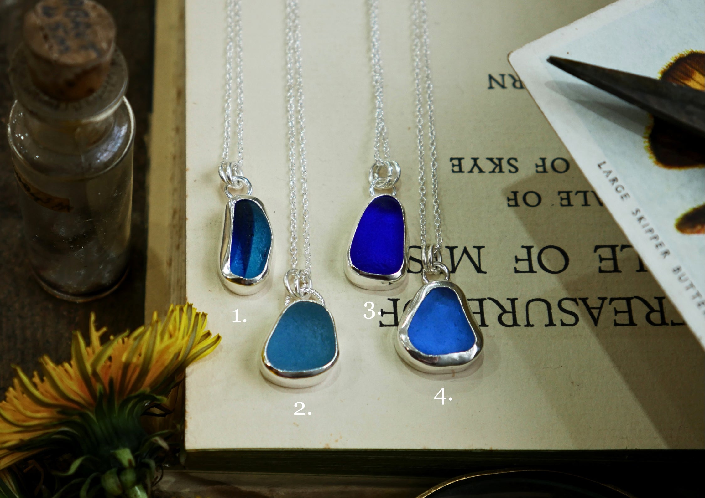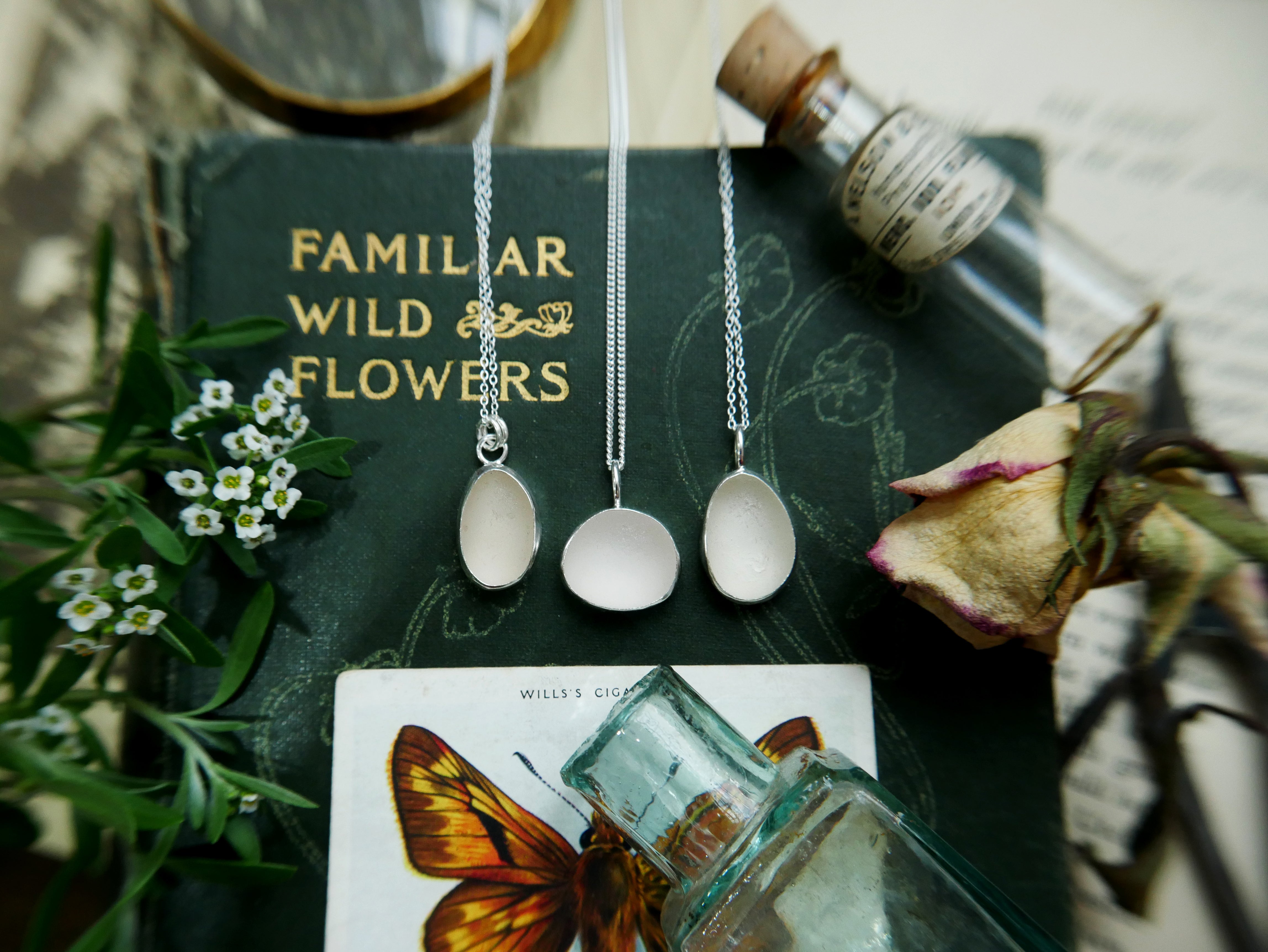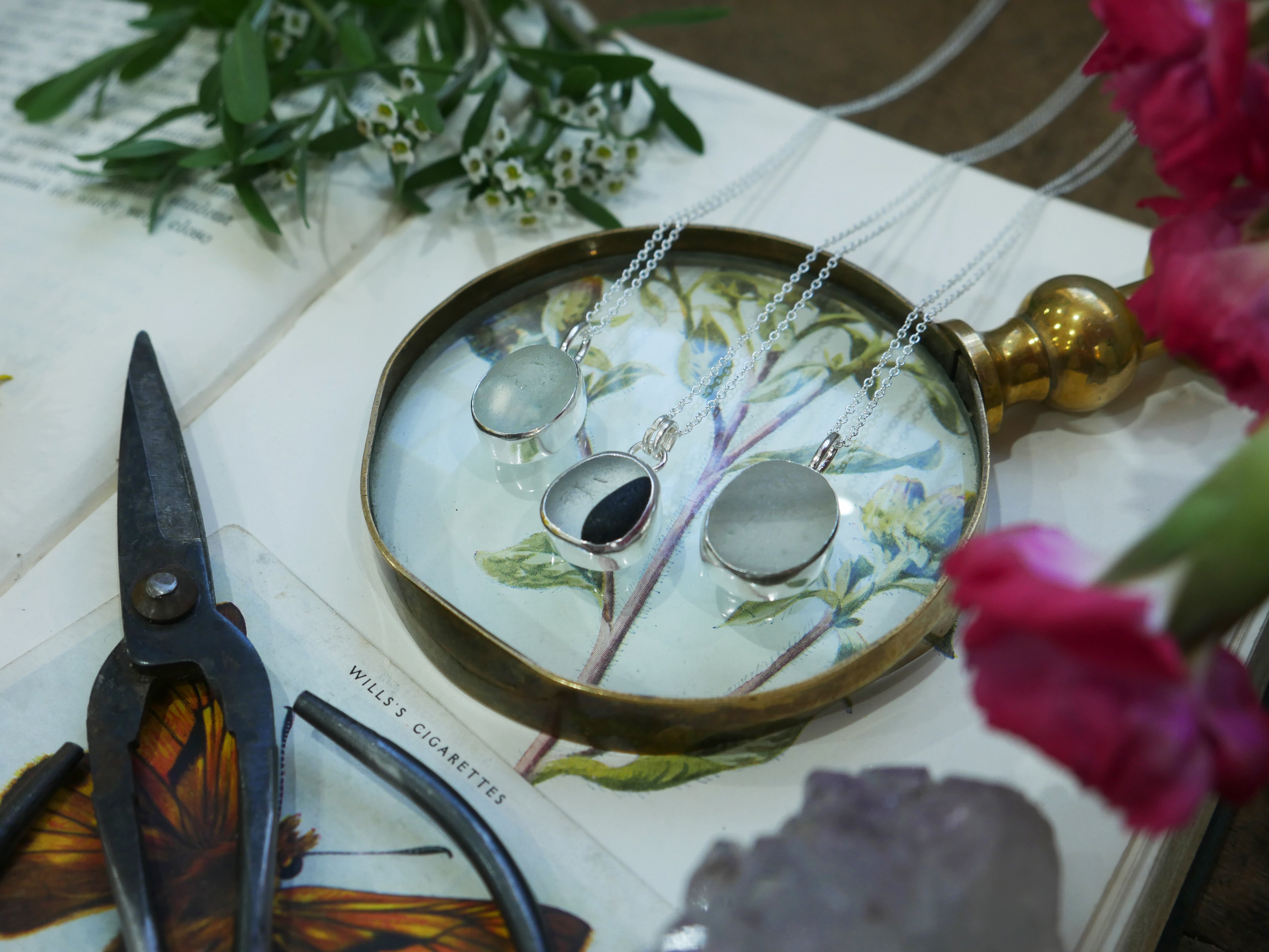 Each of our classic sea glass necklaces are completely unique and come in a wide variety of shapes and colours, all of which have been hand collected and found on shores all over Scotland by us. 100% hand crafted in beautiful, bright sterling silver in our Glasgow shop.