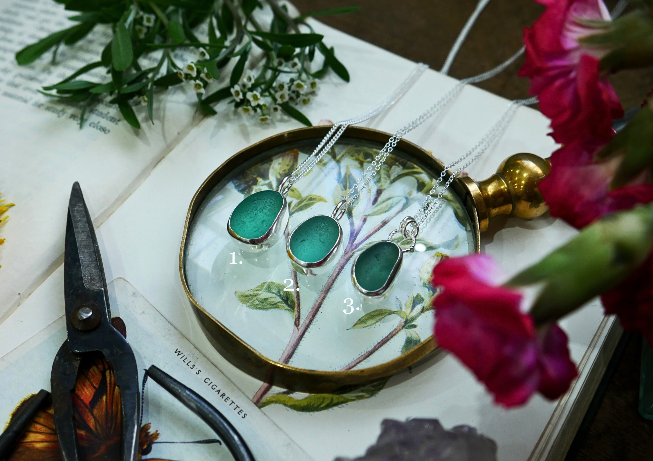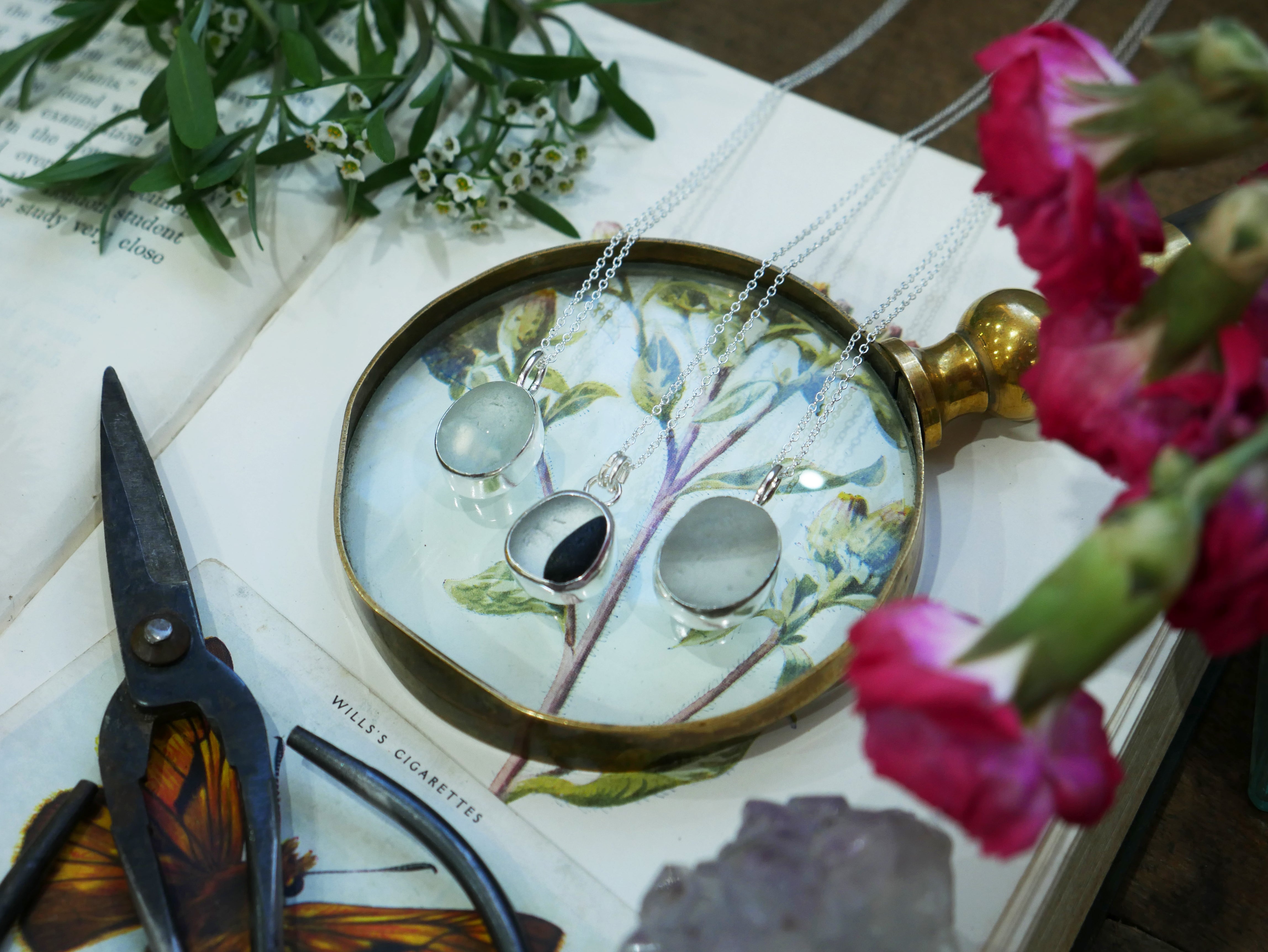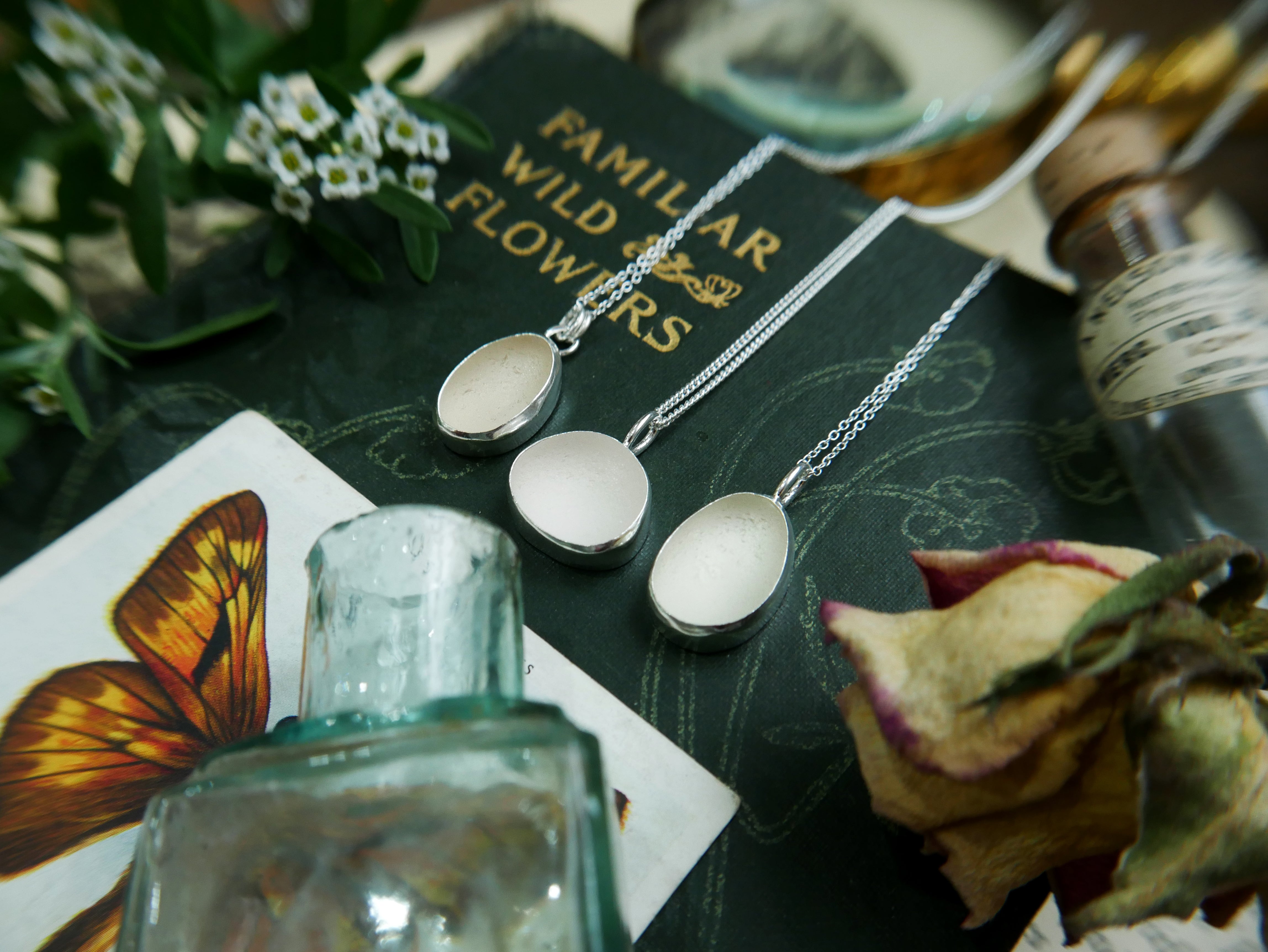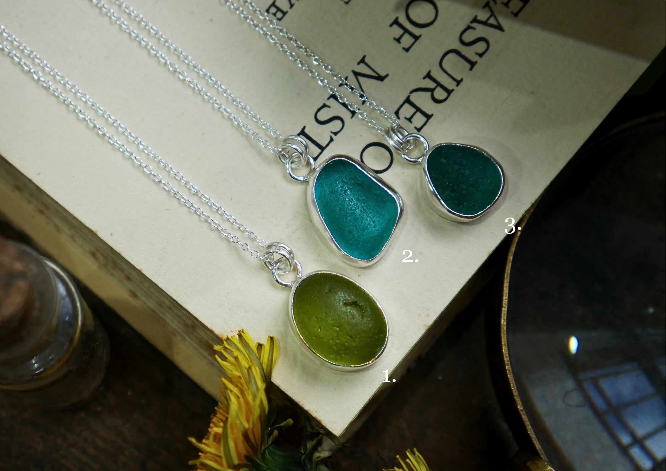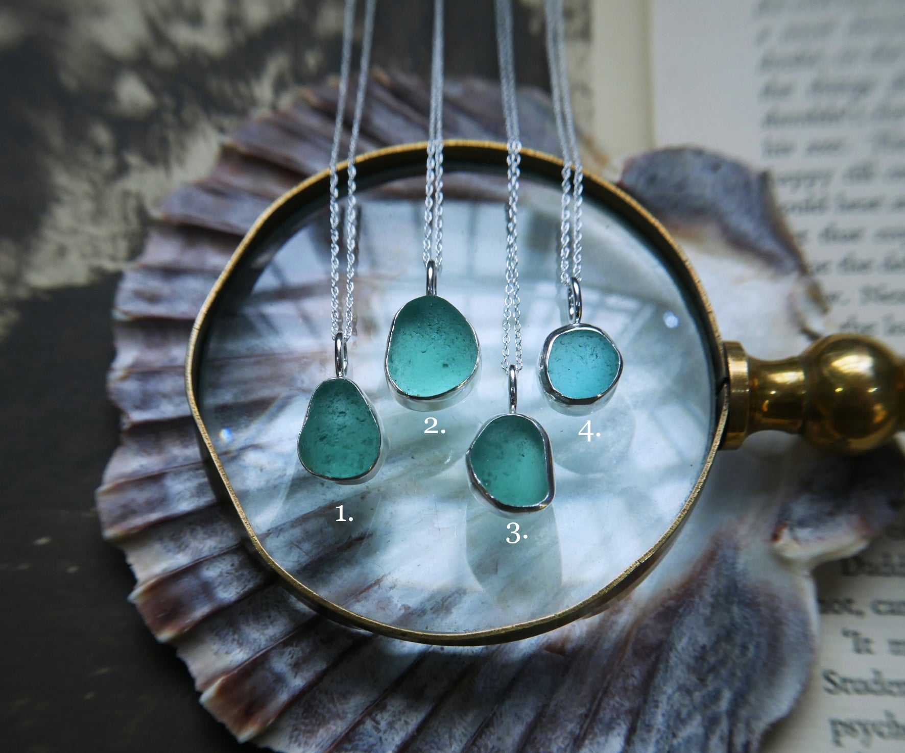 Each of our classic sea glass necklaces are completely unique and come in a wide variety of shapes and colours, all of which have been hand collected and found on shores all over Scotland by us. 100% hand crafted in beautiful, bright sterling silver in our Glasgow shop.