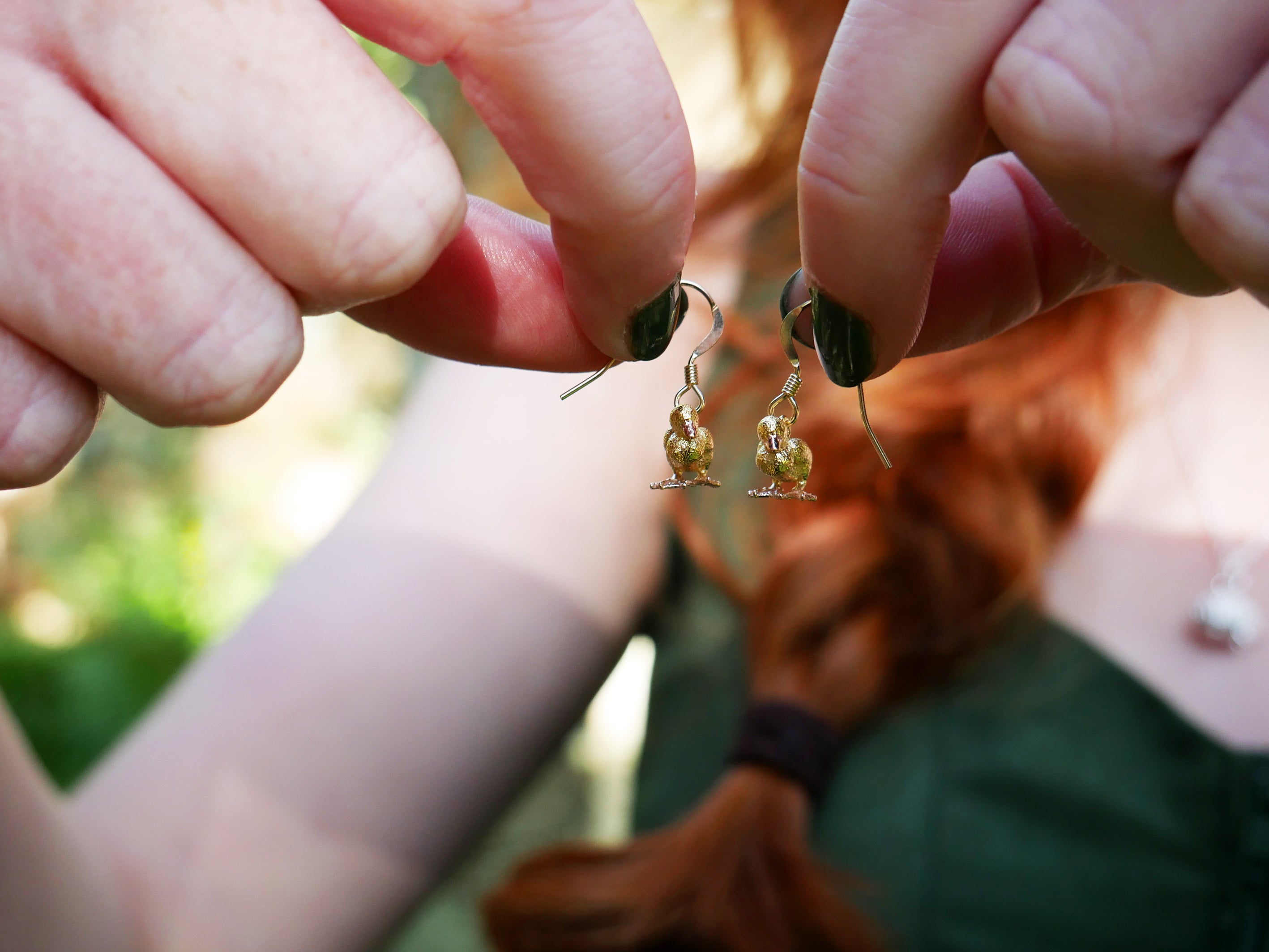 These beautiful highly detailed 3D chick earrings were made in reference to our years of rescuing tiny birds in the Highlands. Most commonly, little oystercatcher chicks would get separated from their mothers as they could not get through farmers meshed fences. We have wonderful memories of collecting these little birds and bringing them back to their mothers as well as pheasants, pigeons and the like.