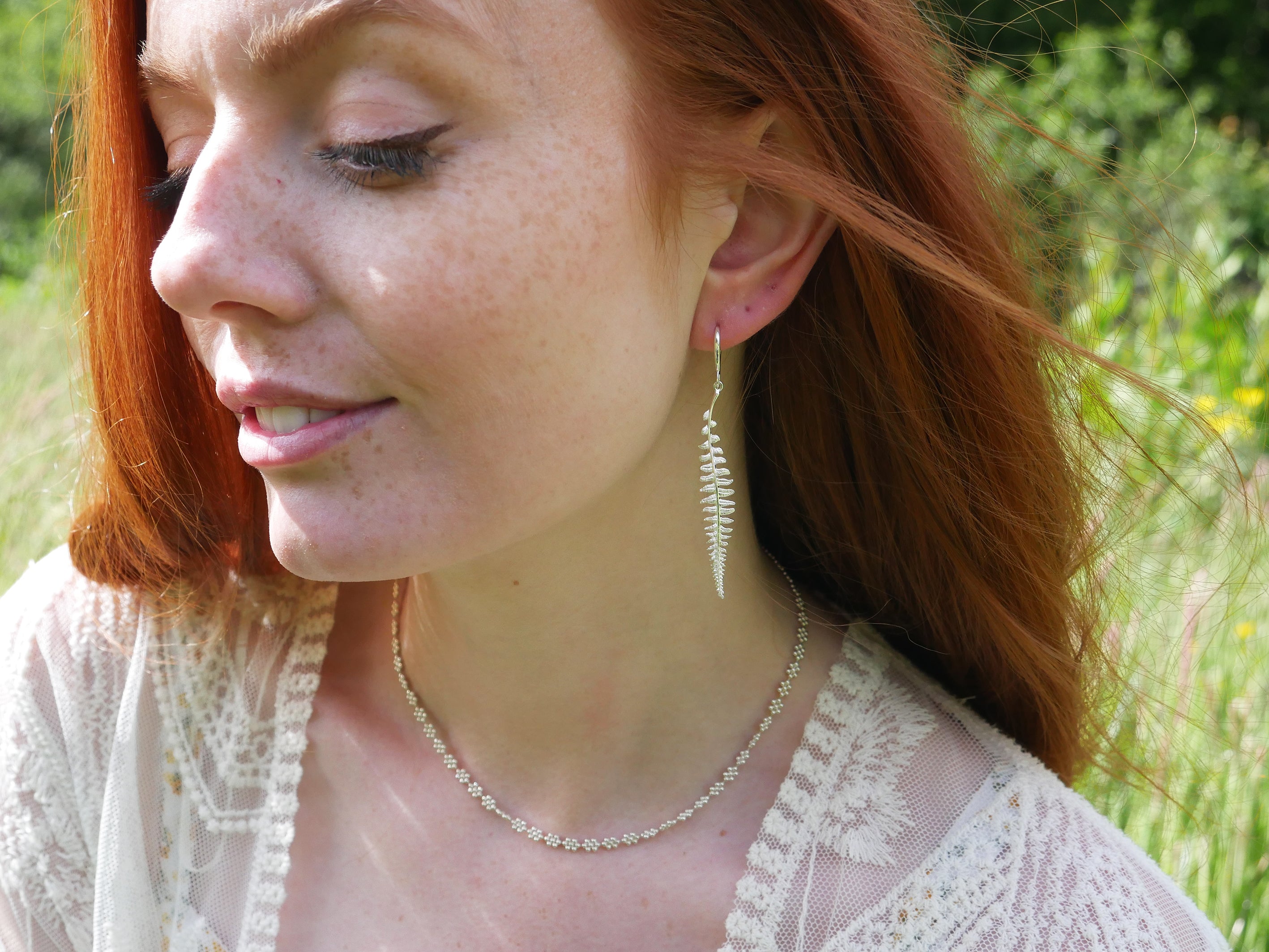 Long forest fern drop earrings in sterling silver (Temporarily sold out, we will ship at the end of November)