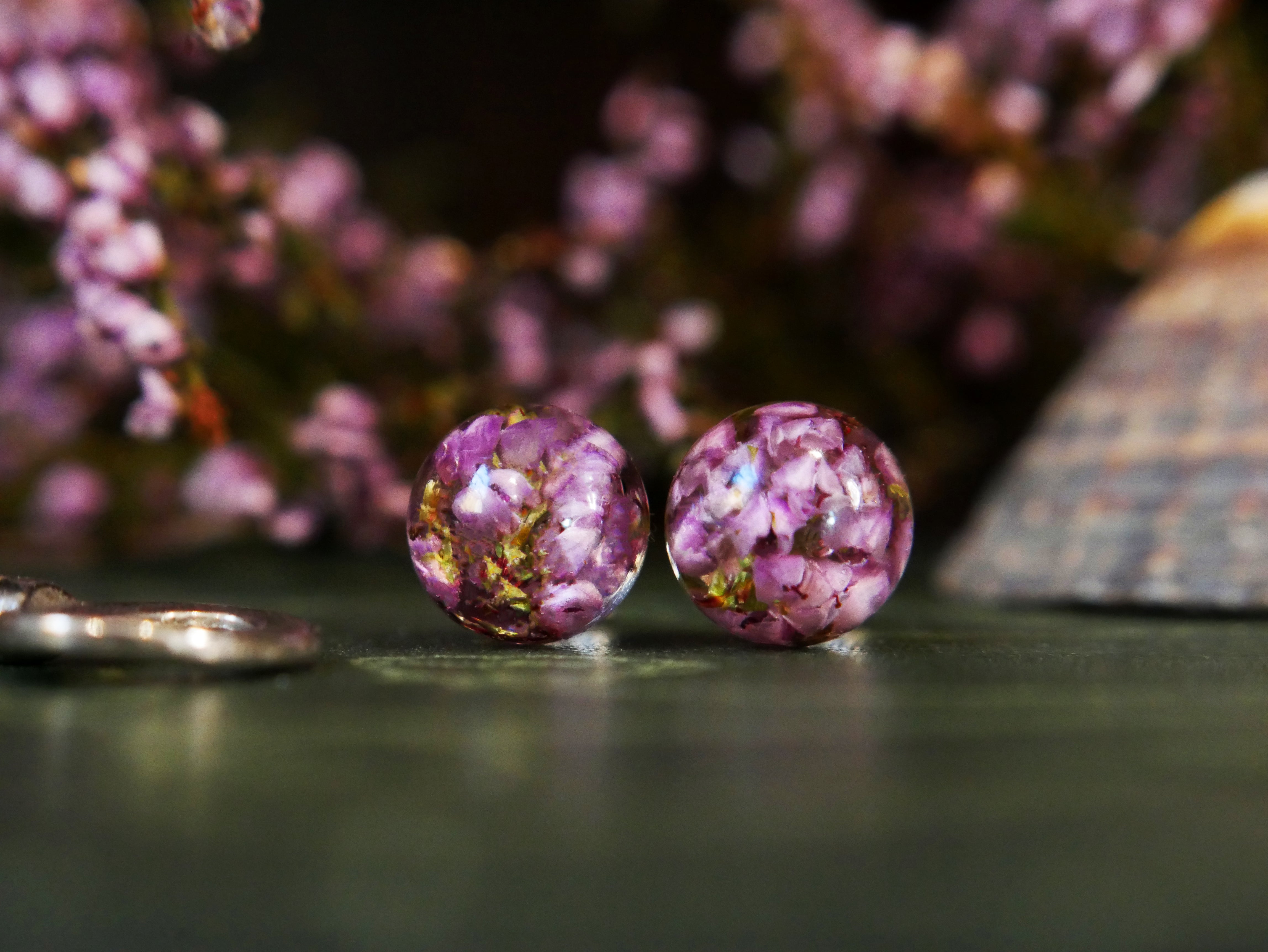 Scottish Highland heather stud earrings in sterling silver - Ling species