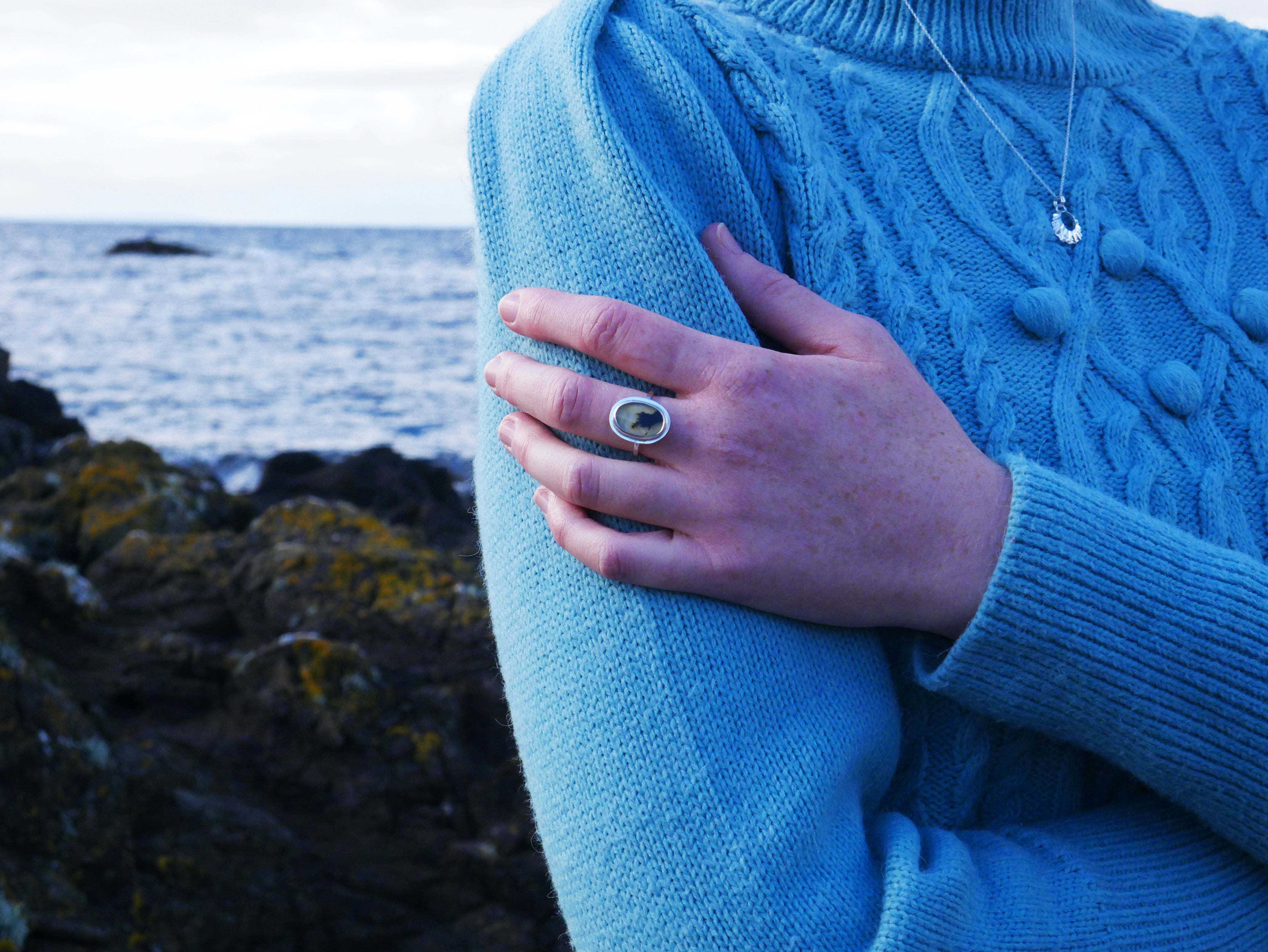 Beautifully set in a modern bezel, this one of a kind Scottish seaweed ring is a treasure for anyone whose heart belongs to the sea.