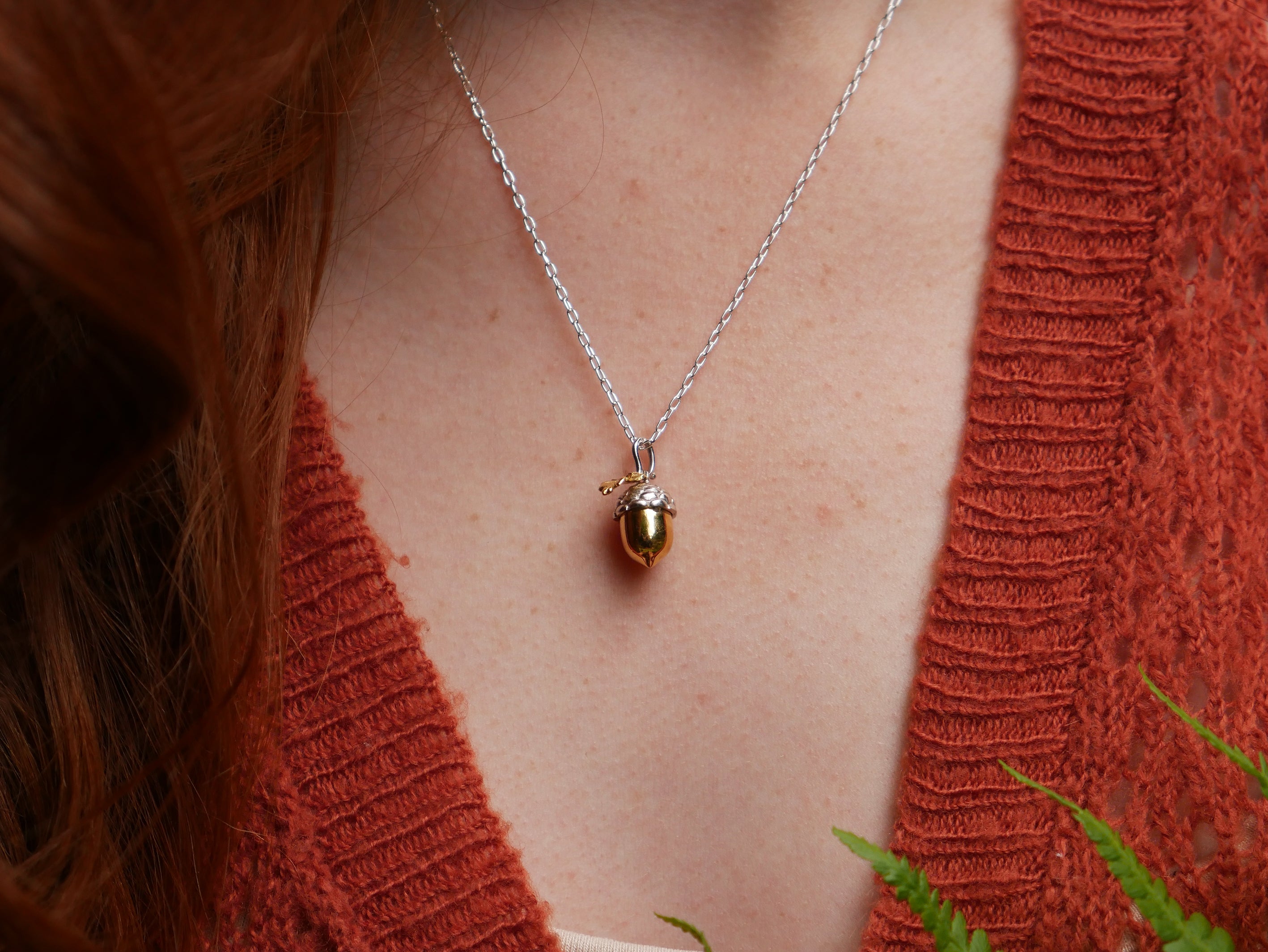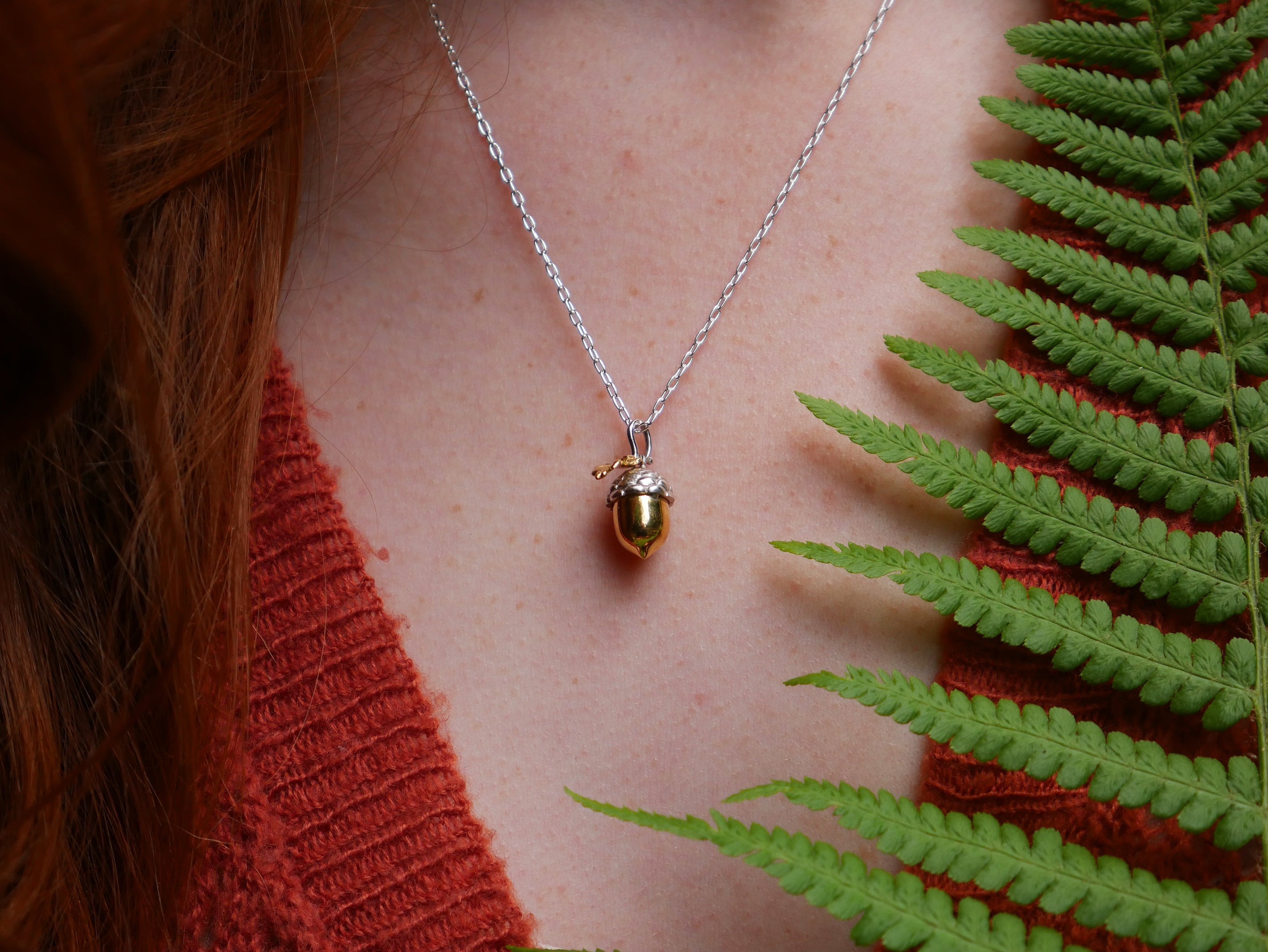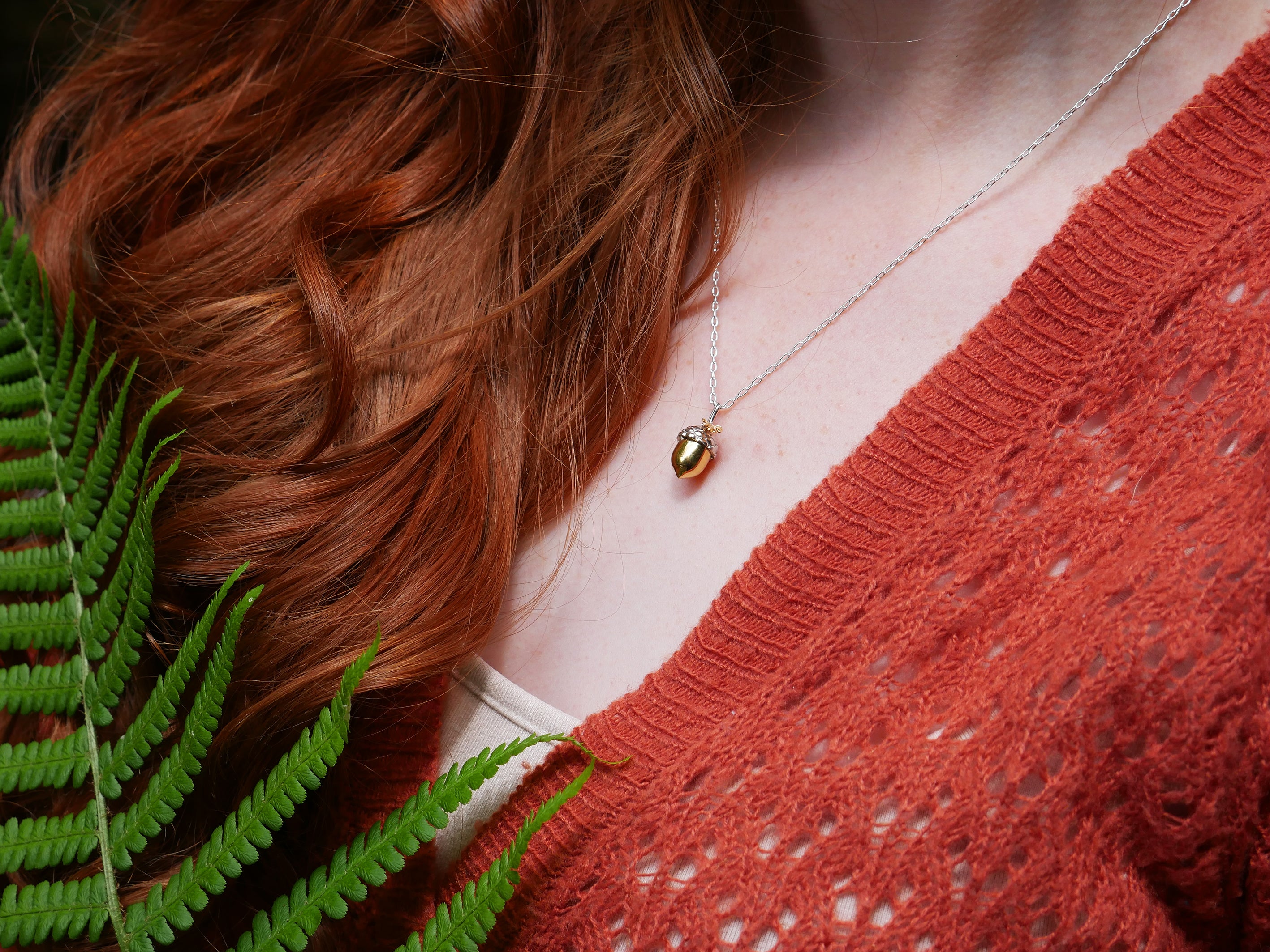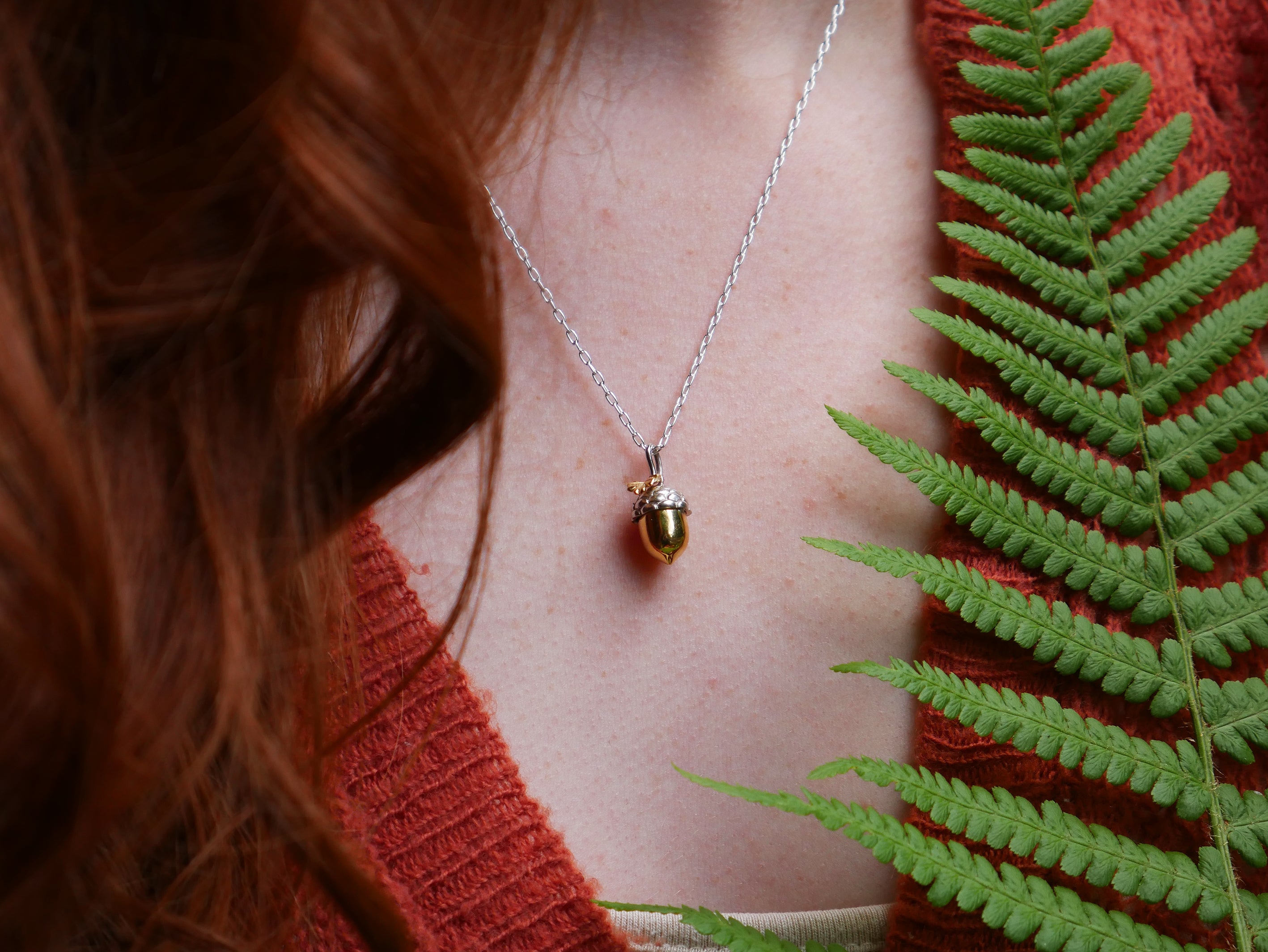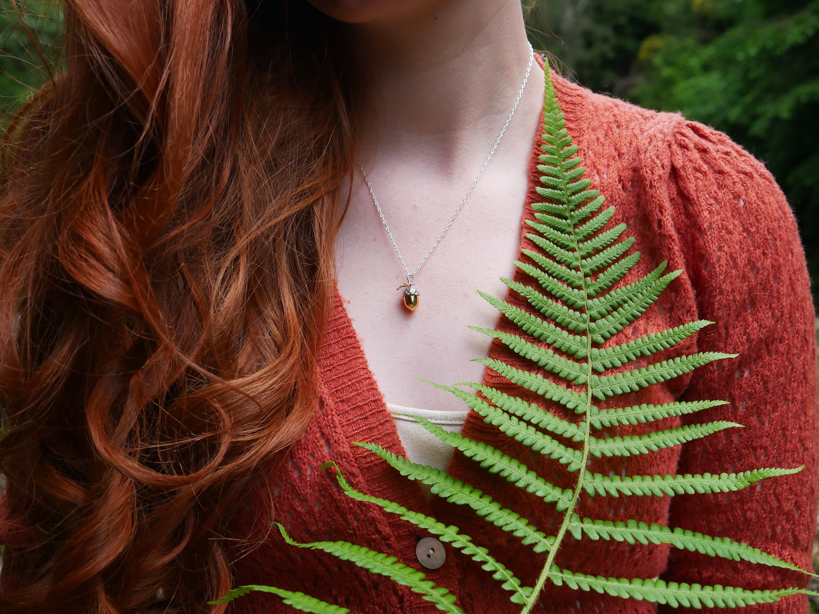 In Angus, where J.M. Barrie wrote Peter Pan, an acorn is known locally as a kiss. With this sentiment, this enchanting acorn necklace was made - a little kiss from the forest.