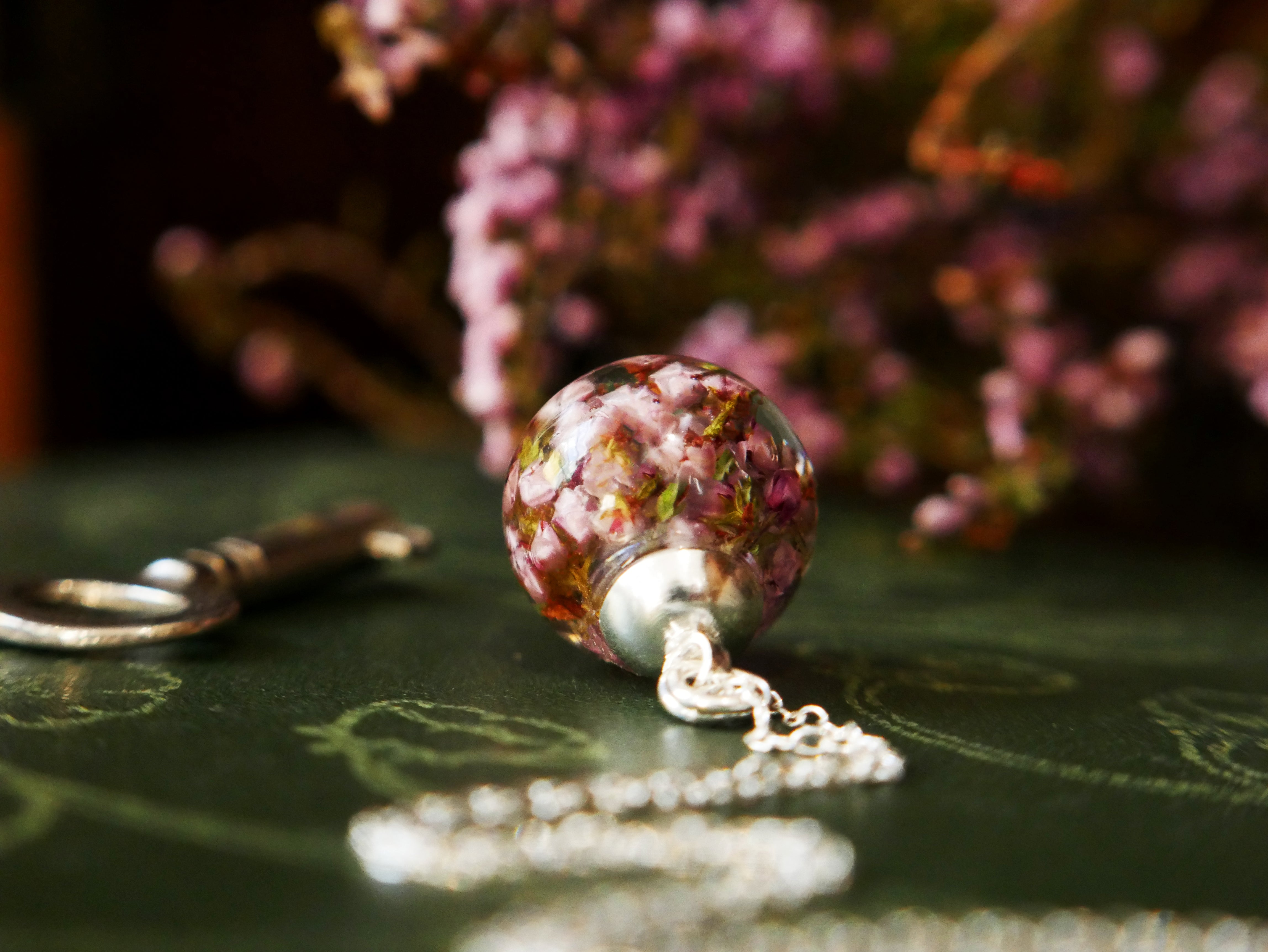 Large Scottish Highland heather necklace in sterling silver - Ling species