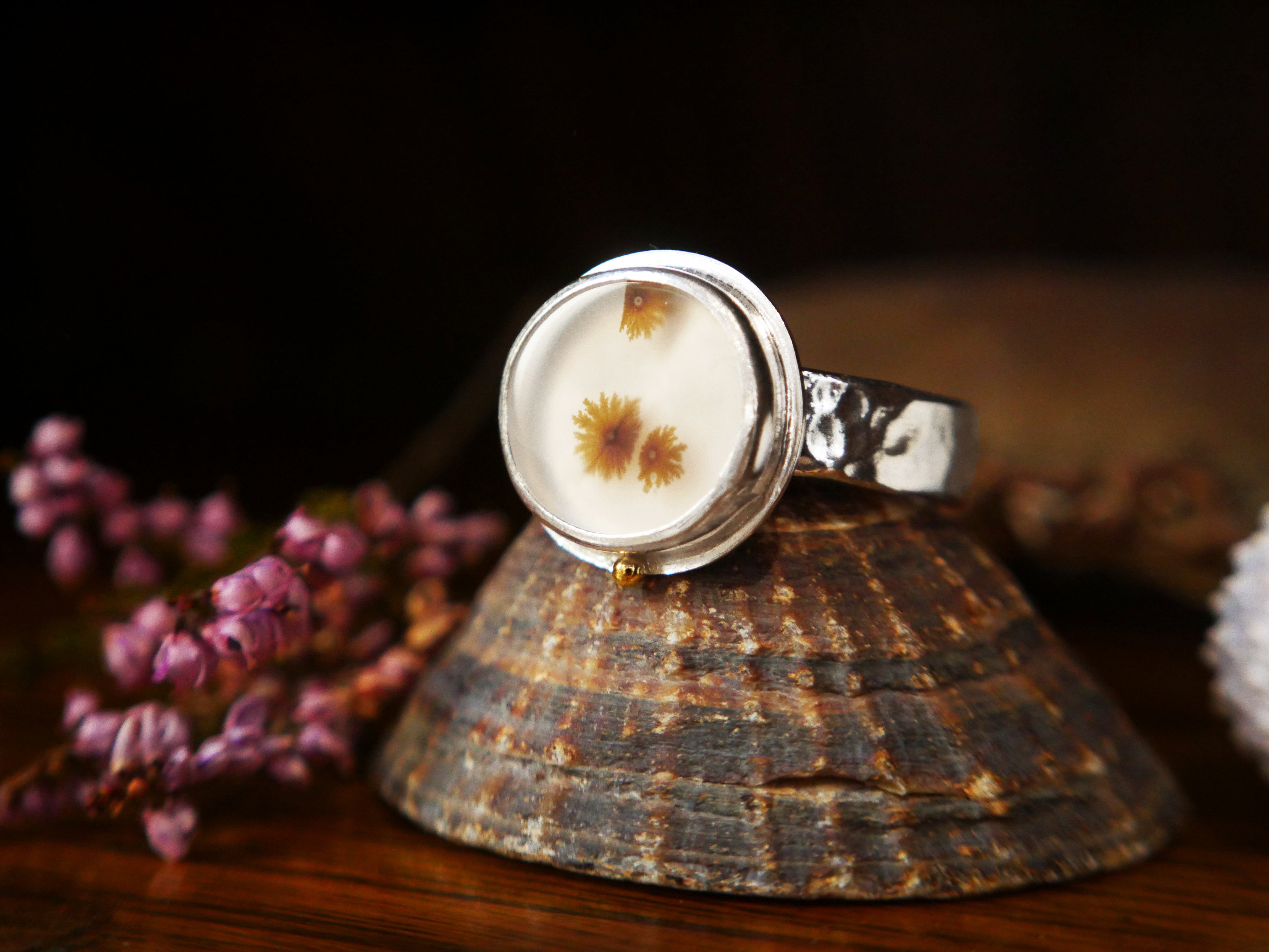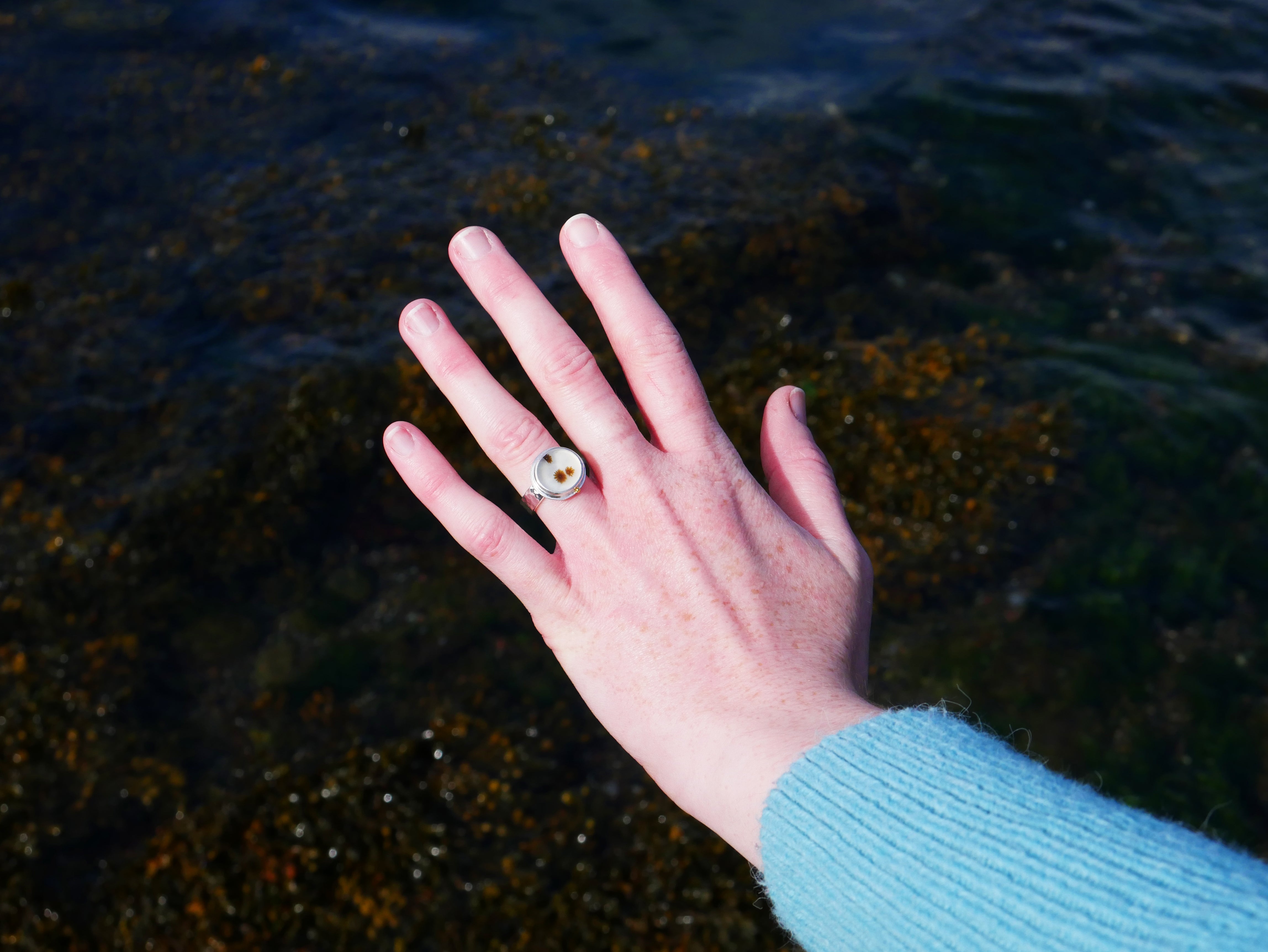 Beautifully set in a modern bezel, this one of a kind Scottish seaweed ring is a treasure for anyone whose heart belongs to the sea.