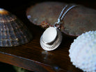 100% sterling silver, hand crafted by us. 18 inch chain.